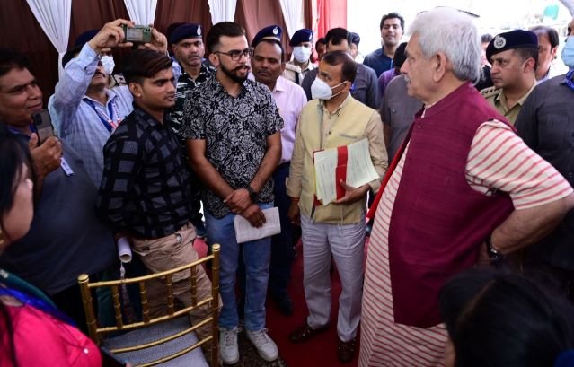 Lt Governor Manoj Sinha visits Pantha Chowk Yatra transit camp
