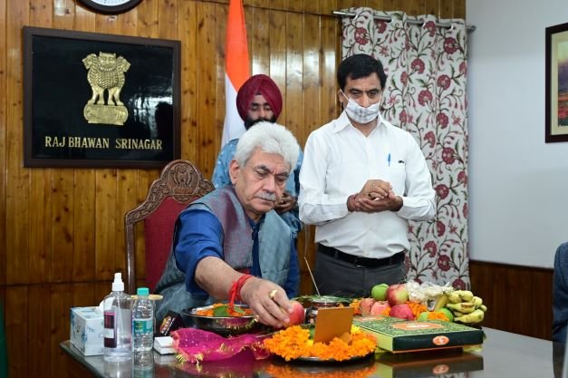 Srinagar, August 12: Lieutenant Governor Manoj Sinha today morning performed the ‘Samapan Pooja’ which marks the end of annual Shri Amarnathji Yatra, and prayed for peace, progress and prosperity of the people.