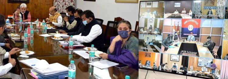 Sh. Kewal Kumar Sharma and Sh. Rajeev Rai Bhatnagar, Advisors to the Lt Governor; Sh. BVR Subrahmanyam, Chief Secretary; Sh. Dilbag Singh, DGP, Sh. Arun Kumar Mehta, Financial Commissioner, Finance Department; Sh. Dheeraj Gupta, Principal Secretary to the Government, Housing and Urban Development Department; Sh. Navin Kumar Choudhary, Principal Secretary to the Government, Animal and Sheep Husbandry Department; Sh. Rohit Kansal, Principal Secretary, Power Development Department, and Information Department; Sh. Nitishwar Kumar, Principal Secretary to the Lt Governor; Sh. Sanjeev Verma, Divisional Commissioner, Jammu; Sh. Pandurang K. Pole Divisional Commissioner Kashmir; Ms. Sheetal Nanda, Secretary to the Government, Department of Rural Development and Panchayati Raj; Sh. Simrandeep Singh, Secretary, Public Grievances, All Deputy Commissioners, SPs, and other senior officers attended the meeting, in person and through virtual mode.