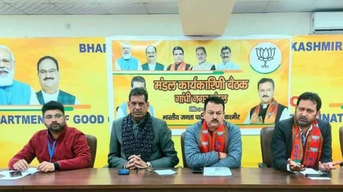 Keeping in exercise to continuously evaluate and design its future strategies the head of BJP Jammu district President Vijay K Gupta Vinay took the working committee meeting (Karyekarni) of all Gandhi Nagar, East & Satwari BJP Mandals respectively in different locations within Jammu District.