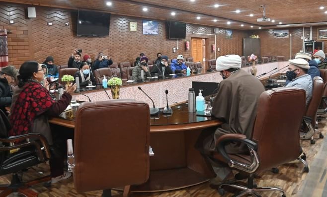 KARGIL, JANUARY 09, 2022: To address various issues concerning the public, Member, National Commission for Minorities (NCM), Government of India, Rinchen Lhamo today chaired a meeting with representatives of various religious organizations of Kargil district at Conference Hall, Baroo.