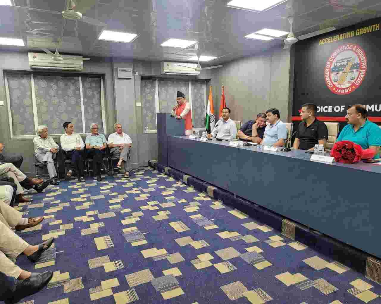 Sh. Arun Gupta, President CCI welcomed Sh. Ghulam Ali Khatana Sahib and during discussions highlighted various issues pertaining to Trade, Industry and the general public of Jammu which include stoppage of the installation of smart meters immediately, Toll Tax being charged at Thandi Khoi by NHAI be kept in abeyance till the construction of expressway corridor and the damaged bridge at Tarnah Nallah(Chadwal)  is made operational, GST linked incentive be made available to the existing Industries also for their survival and in the era of cut-throat competition, Mother Industries like Rail Coach Factory and Defence Equipment manufacturing Factory be established in Jammu in order to generate employment opportunities for the youth of our UT, Freight Subsidy be provided upto National Capital to save the existing Industry, Issues relating to GST Refund and Interest Subsidy, The concessions being provided to the new Industrial Units is also extended to the existing Industrial Unit for their survival.