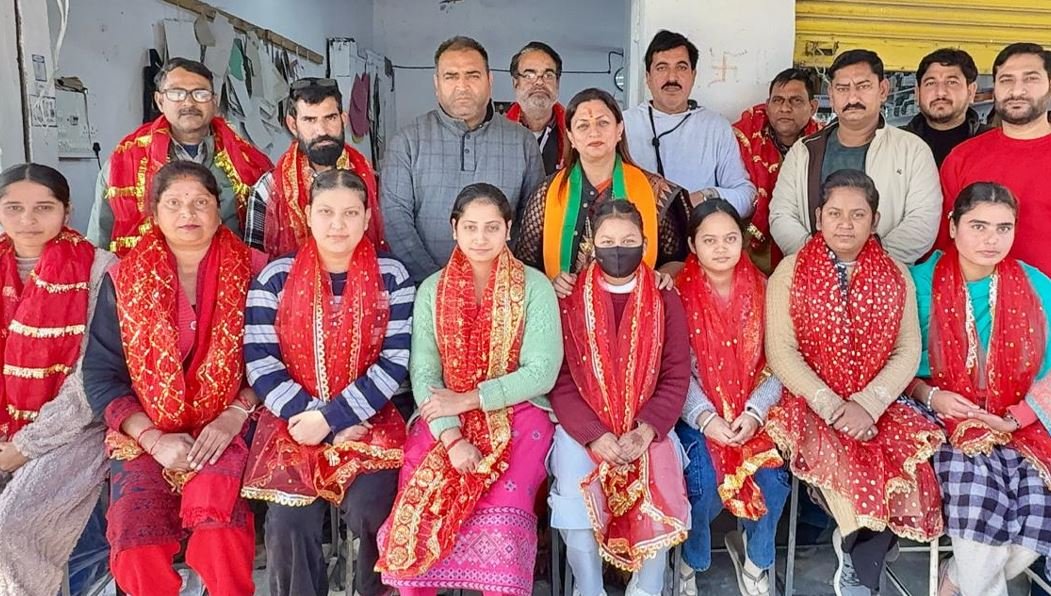 JAMMU, Dec 16: BJP J&K Vice President and Prabhari Samba, Rekha Mahajan, today felicitated Ravi Sharma, proprietor of Jayesh Angile Wear along with his dedicated team for their contribution to local manufacturing.