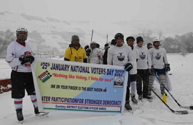 Kargil, Jan 25, 2023: District Election Office Kargil today observed the 13th National Voter’ Day 2023 under the theme ‘Nothing Like Voting, I Vote for Sure’’ at Khree Sultan Cho Sports Stadium, Kargil.