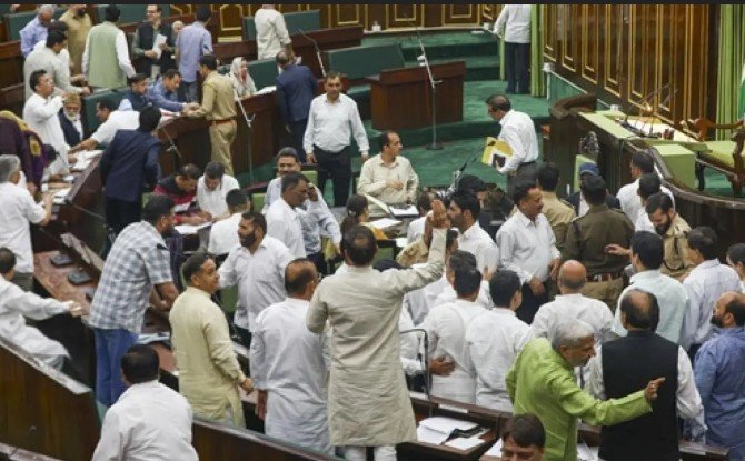 NC, Congress MLAs Hold Silent Protest in J&K Assembly Demanding Release of AAP Legislator Mehraj Malik