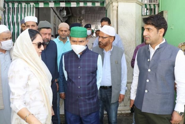 SRINAGAR MAY 02:- Principal Secretary to Lieutenant Governor, Nitishwar Kumar today visited Hazratbal Shrine and Ziyarat Hazrat Sheikh Hamza Makhdoom Sahib (RA) to take stock of final arrangements for the auspicious day of Eid-ul-Fitr.