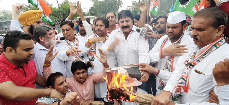 27-07-2022 : Jammu: Jammu Kashmir Pardesh Congress took out a protest rally at Bagh-e-Bahu in Jammu against the arrest of Rahul Gandhi along with other MPs and torched effigies of Modi & Amit Shah. The rally led by JKPCC Working President Raman Bhalla and joined by Chief Spokesperson Ravinder Sharma, JKPCC General Secretary & District President Incharge Yogesh Sawhney, Uday Bhanu Chib Youth President, Sewadal Chairman Vijay Sharma Babbi, Block President Jatinder Singh Chib, Latish Sharma, Satpal Sapolia, Mulakh Raj, Sahil Langeh, Panch Gagan Bral, Atul Sharma, Ram Magotra, Balram Langeh, Arif Malik, Gurdeep Singh, Diwan Chand, Happy Randhawa, Mangat Ram, Sahil Shavotra, Satish Kumar beside others. Party activists carrying placards in their hands raised vociferous slogans against the Enforcement Directorate (ED) and the Modi government.