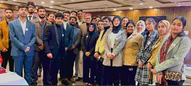 Omar Abdullah interacts with IIMUN participants at Nawa-e-Subha, Srinagar