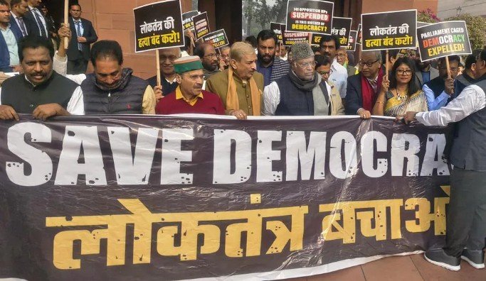 Key leaders participating included Congress president Mallikarjun Kharge, AICC general secretary K C Venugopal, DMK’s K Kanhimozhi, TR Ballu, A Raja, IUML’s E T Mohammed Basheer, Shiv Sena (UBT)’s Arvind Sawant, and RSP’s N K Premchandran. Senior Congress leader Sonia Gandhi also joined the demonstration at Makar Dwar.