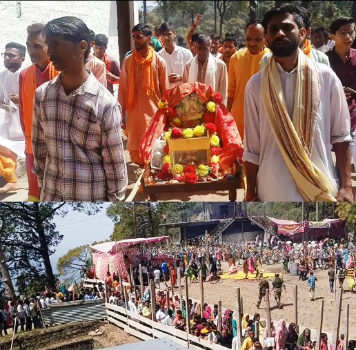 Pertinent to mention here that the Akhand Jyoti of Mahamaya Chountra Devi ji was lit at Narsingh ji Mandir Ramnagar on the occasion of the first Navratra. The Akhand Jyoti was taken from Ramnagar to the shrine in a colourful procession amid chanting of bhajan & kirtan.