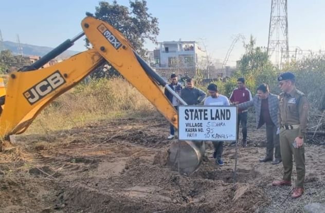 Similarly, in another anti-encroachment drive, state land measuring 10 Kanal in prime location of Village Sidhra, Tehsil Jammu Khas worth crores of rupees, was retrieved today by District Administration Jammu along with a team of revenue officers and police.