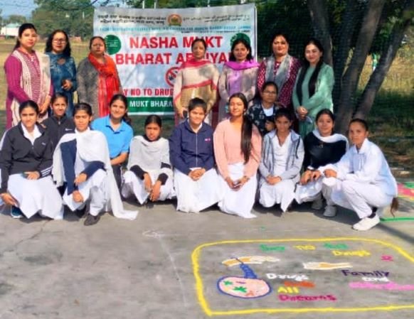 JAMMU, NOVEMBER 15: Nasha Mukt Bharat Abhiyan Committee of the PSPS Govt (PG) College for Women, Gandhi Nagar , on Tuesday organised Rangoli Making Competition on theme “SAY NO TO Drugs” under Nasha Mukt Bharat Abhiyan in Sports Play Ground of the College.