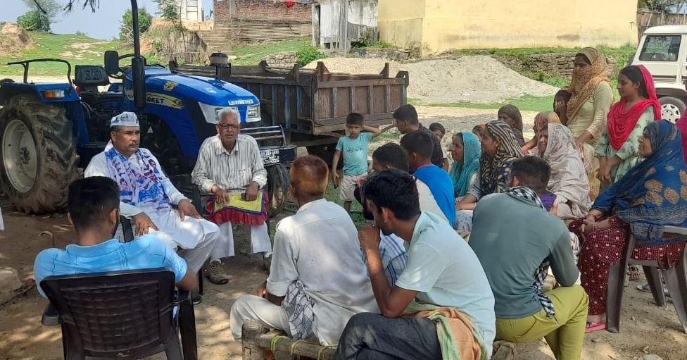 04-07-2022 : Khajur Singh Ex-Sarpanch Bagla Rahya and Retd. Principal along with his associates of Aam Admi Party under the leadership of Rajesh Pargotra of Aam Admi Party (AAP) visited hamlet Badhar Ali and Mohalla SC in Panchayat Halqa Khara Block Purmandal Tehsil Bari Brahmana Constituency Vijaypur.