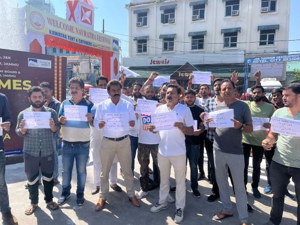 Congress leaders and workers demonstrated vigorously against the Shrine Board administration and the local administration in Katra against the problems being faced by the devotees coming from all over the country to have darshan of Mata Vaishno Devi. Congress workers under the leadership of Congress Committee District President Rajesh Sadhotra demonstrated against the Shrine Board administration and the local administration at the main bus stand of Katra with banners in their hands. He demanded that harassing devotees in the name of RFID travel cards should be stopped.
