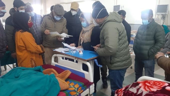 BARAMULLA, JANUARY 25: In order to take first hand appraisal of the facilities being provided to the patients and taking stock of the overall functioning of health institutions to provide qualitative health care services, a surprise inspection of Government Medical College Baramulla was today conducted by Chairperson, District Development Council Baramulla, Safeena Beigh along with other concerned functionaries of the district.