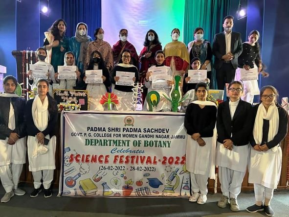 JAMMU, FEBRUARY 28: The three day ‘Science Festival-2022 on the theme – ‘Integrated Approach in Science and Technology for a Sustainable Future’ organised by Department of Botany, Padma Shri Padma Sachdev Government P G College for Women Gandhi Nagar concluded here today on National Science Day 2022.