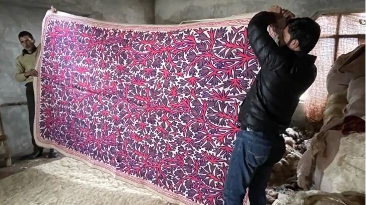 At the unit of Mohammad Iftikhar Bhat a resident of Kutub-u-dinpora Aali Kadal, the team witnessed weaving magic on Kani Shawls. The skills of masterful manipulation of threads on needles have no parallel and these skillful manipulations make Iftikhar confident about incorporating any contemporary design on the shawls.