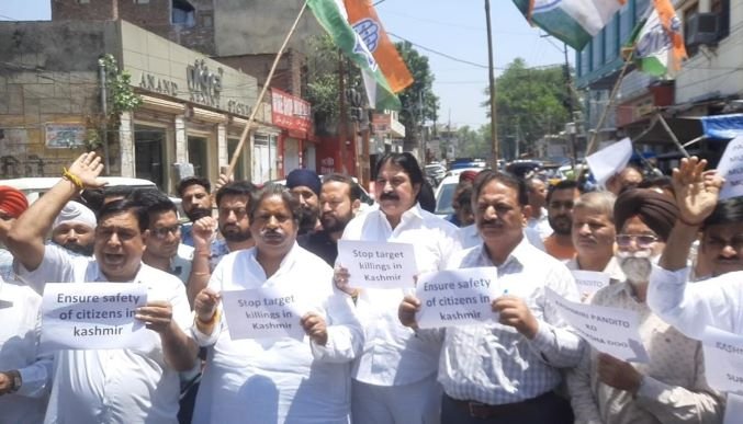 Jammu, May 14- Congress today  held a strong protest demonstration in Jammu against the selective killing of Rahul  Bhat and  other targeted killings in Kashmir, for the past quite some time and criticized the Govt. for its failure to check such killings of innocents.