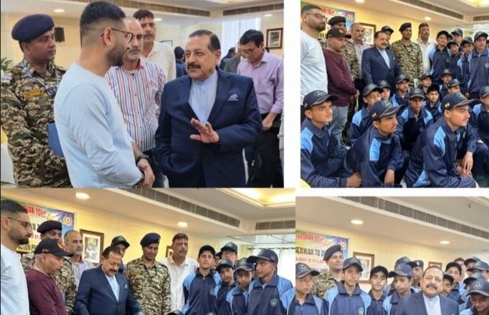 JAMMU, MARCH 15: Students from various schools of District Doda, who are currently on Bharat Darshan tour-2024 sponsored 33 BN CRPF under Civic Action Plan, met Dr Jitendra Singh, Union Minister of State (Independent Charge) for Science & Technology, MoS PMO, at the Institute of Civil Service Office Delhi.