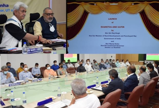 JAMMU, OCTOBER 02: Union Minister for Panchayati Raj and Rural Development Sh Giriraj Singh and Lieutenant Governor Manoj Sinha today e-launched Unique Land Parcel Identification Number (ULPIN) and Survey of Villages Abadi and Mapping with Improvised Technology in Village Areas (SVAMITVA), two ambitious projects in Jammu and Kashmir.