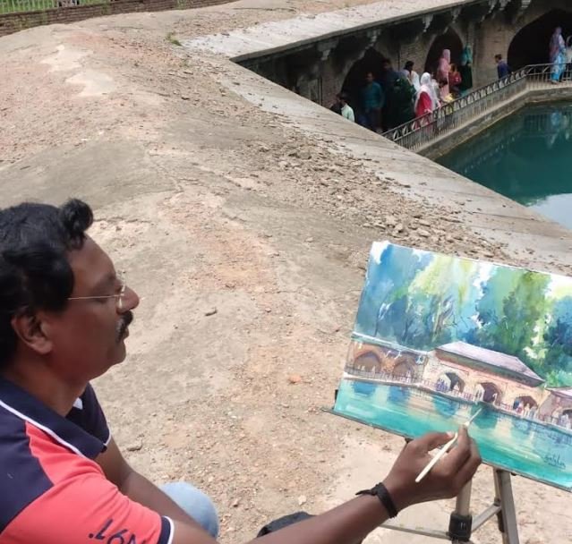 The group of artists comprising Shryansy Singh Manu, Arvinder Goldsmith, Gulshan Achari, Sajal Mitra, Vijay Pundkar and Daya Anand today went to Verinag and captured the destination through their paintings and other art forms.