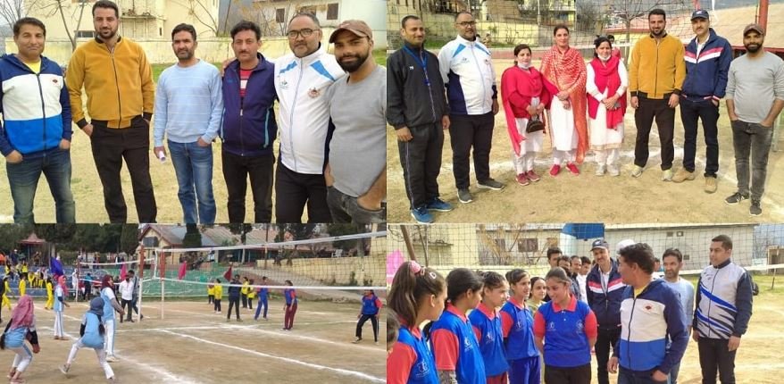 DODA, FEBRUARY 20: The 2nd day of UT level Inter-District Volley Ball Tournament for U-14 girls witnessed quarter-final and semi-final matches among various district teams here at Boys Higher Secondary School Doda.