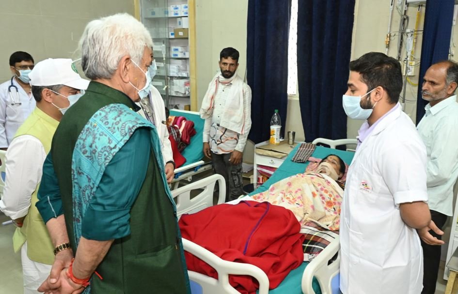 UDHAMPUR, APRIL 27: Lieutenant Governor Shri Manoj Sinha today visited Government Medical College, Udhampur to inquire about the health and well-being of those who sustained injuries during the unfortunate road accident in Ramnagar, Udhampur on April 20.