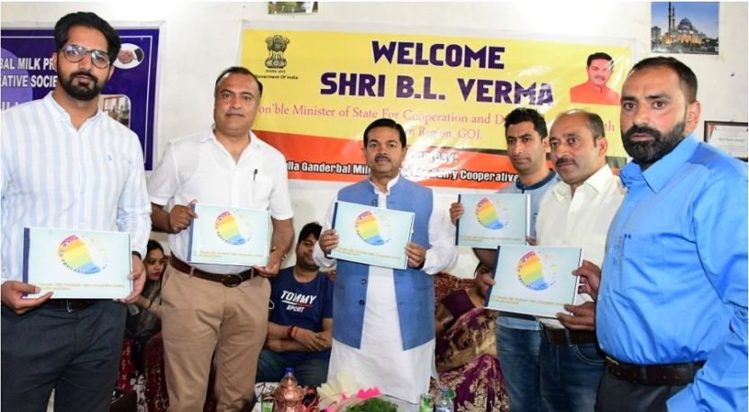 GANDERBAL, MAY 13: Union Minister of State (MoS) for Cooperation and Development of North Eastern Region, B L Verma, today visited Ganderbal and inspected functioning of Tulmulla Milk Producers Dairy Cooperative Society Limited, Ganderbal.