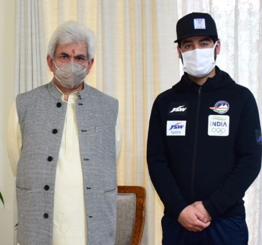 Jammu, January 23:  J&K’s alpine skier, Arif Mohammed Khan who has qualified for Winter Olympics in Beijing called on Lieutenant Governor Manoj Sinha at the Raj Bhavan, here today.