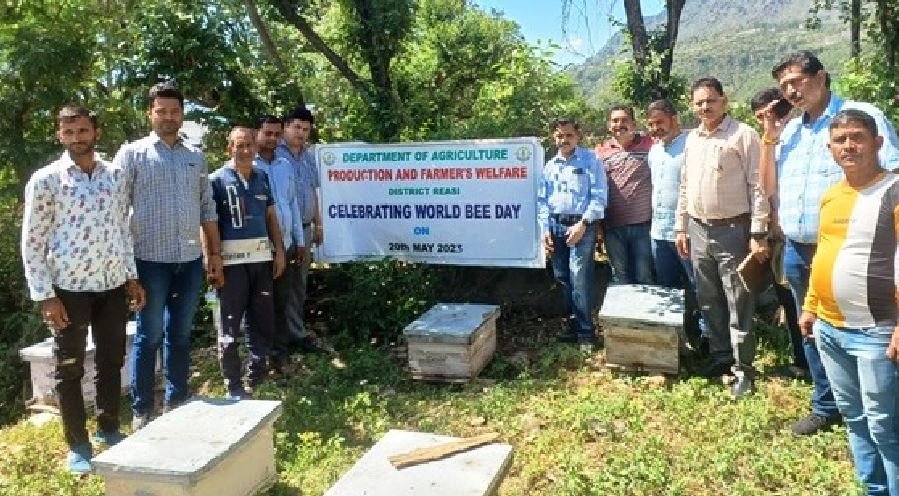 REASI, MAY 20: World Bee Day was celebrated in Reasi District with the theme “Bee engaged in pollinator- friendly agriculture production” to raise awareness about the importance of bees and other pollinators for the environment, agriculture, and human well-being.