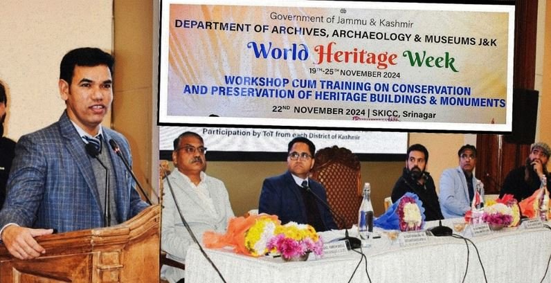 SRINAGAR, NOVEMBER 22: As part of the ongoing ‘World Heritage Week,’ the Department of Archives, Archaeology & Museums on Friday organized an enriching training and learning workshop on ‘Conservation and Preservation of Heritage Buildings and Monuments’ at SKICC, here.